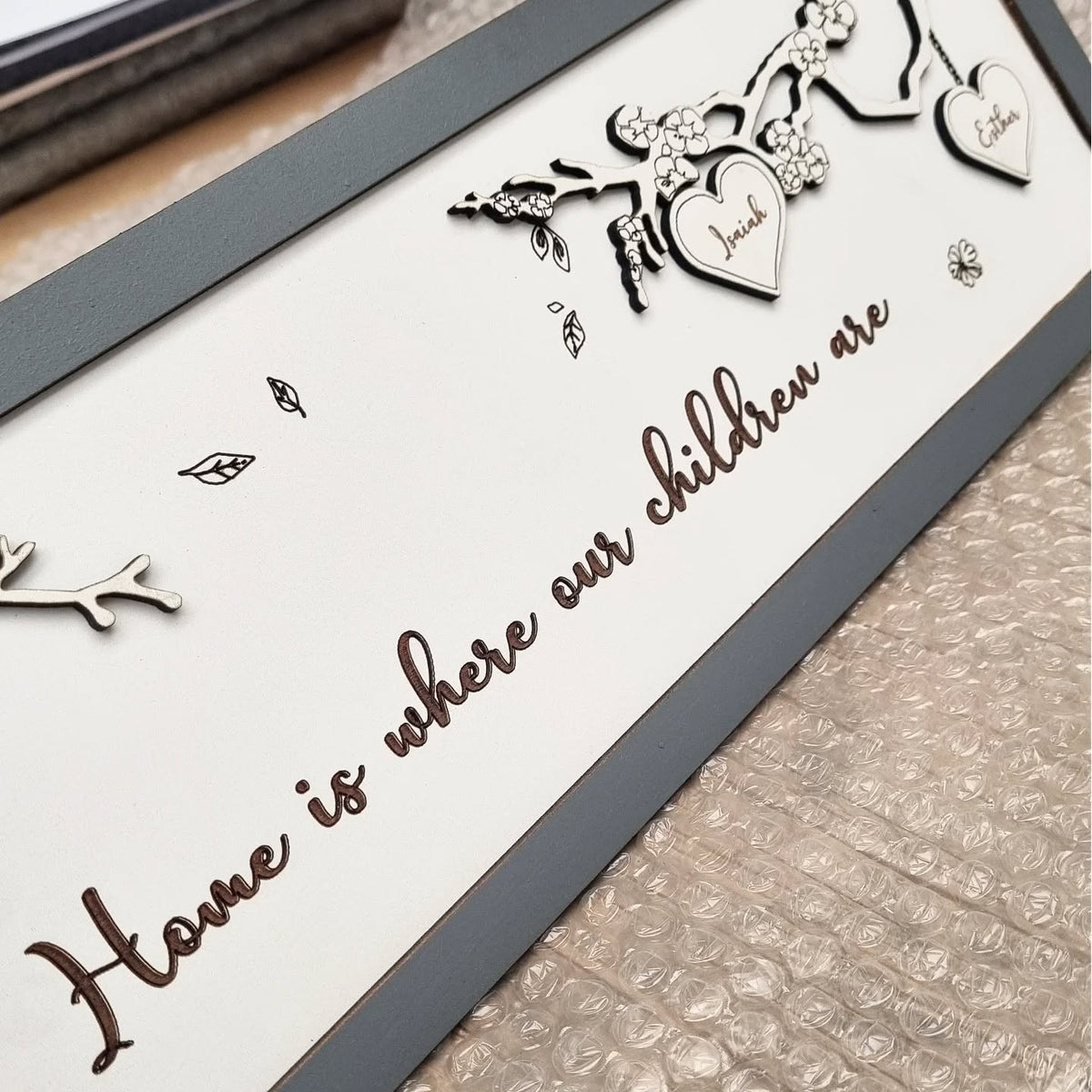 Lovingly handcrafted from premium birch wood, each sign is hand-painted and intricately engraved, combining delicate 3D elements and thoughtful detailing to create a truly unique piece.