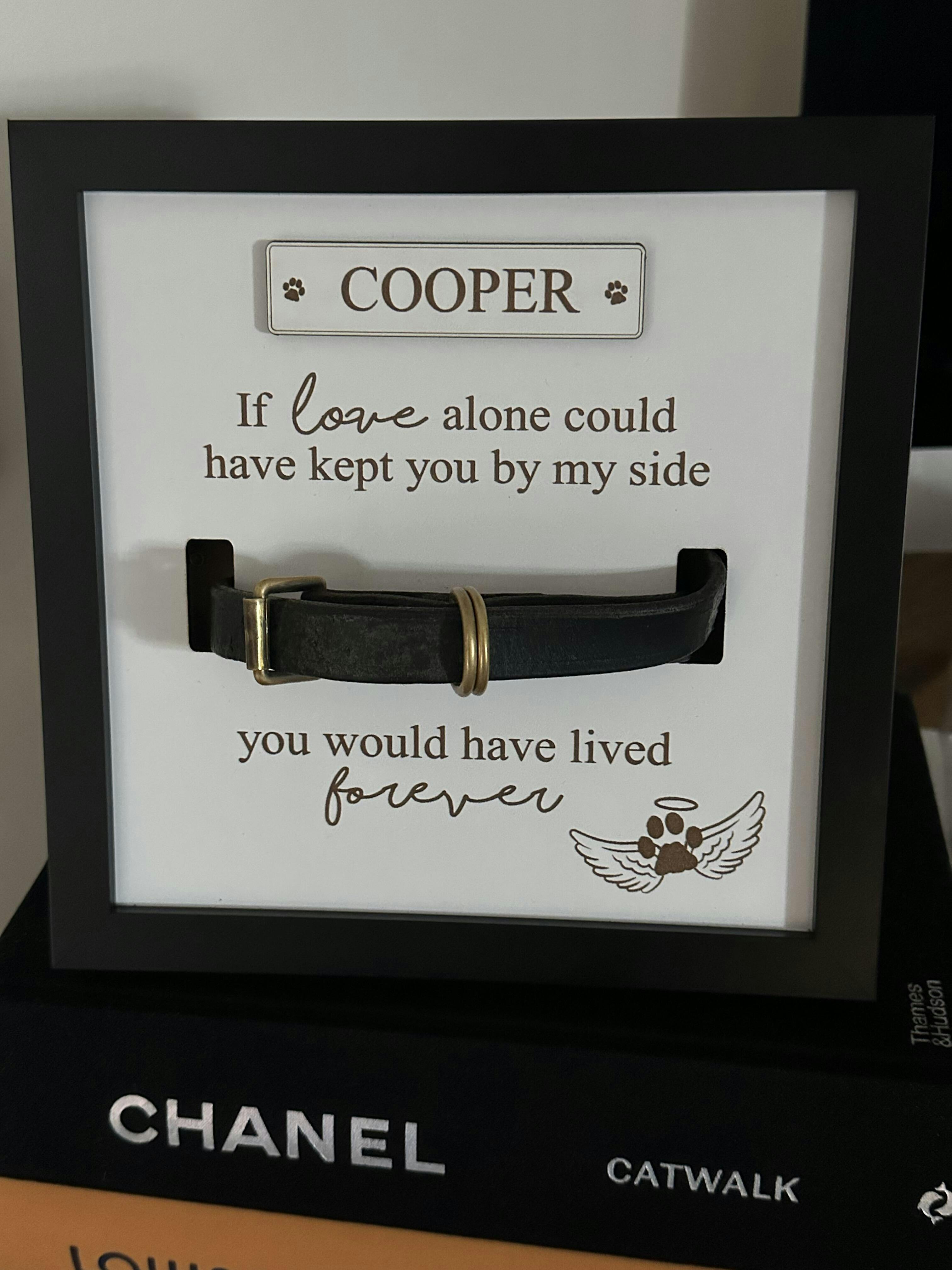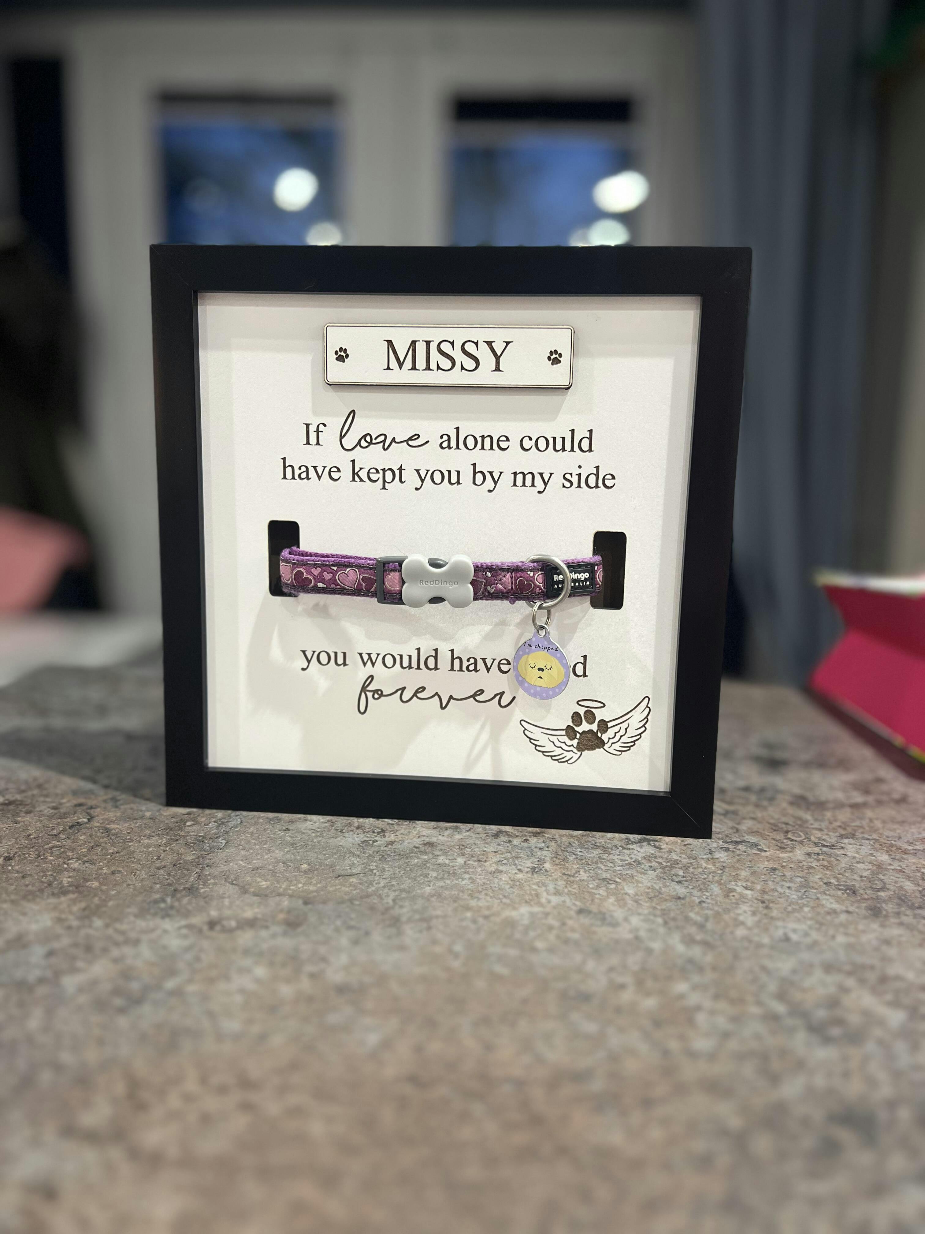 The gap they leave in our lives is enormous and what better way to remember your loved best friend - than with a beautiful keepsake frame to display their collar for always.